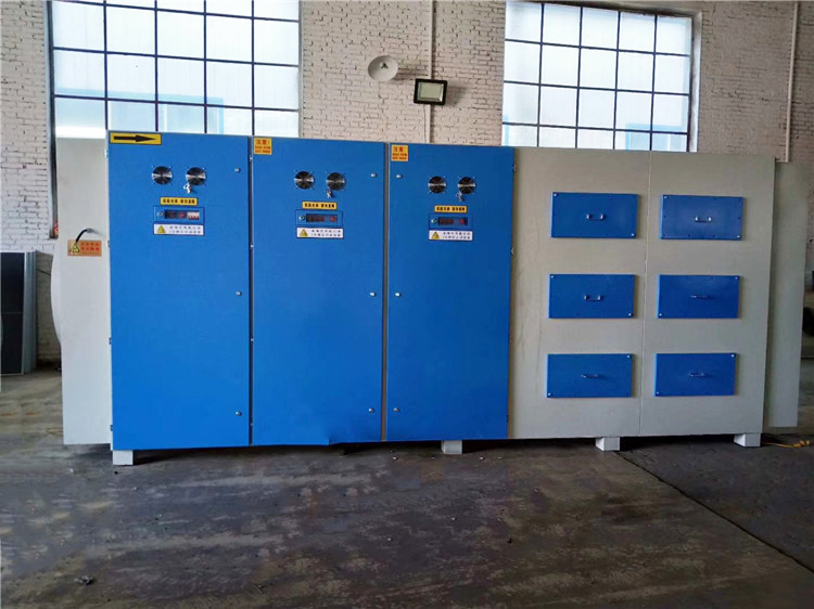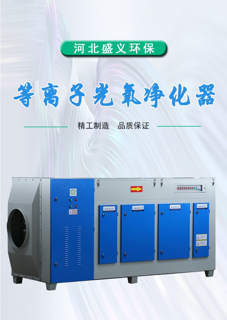 利用低温等离子净化设备中的介质阻挡放电过程中,等离子体内部产生富含较高化学活性的粒子,如电子、离子、自由基和激发态分子等。废气中的污染物质与这些具有较量的活性基团发生反应,转化为CO2和H2O等物质,从而达到净化废气的目的。